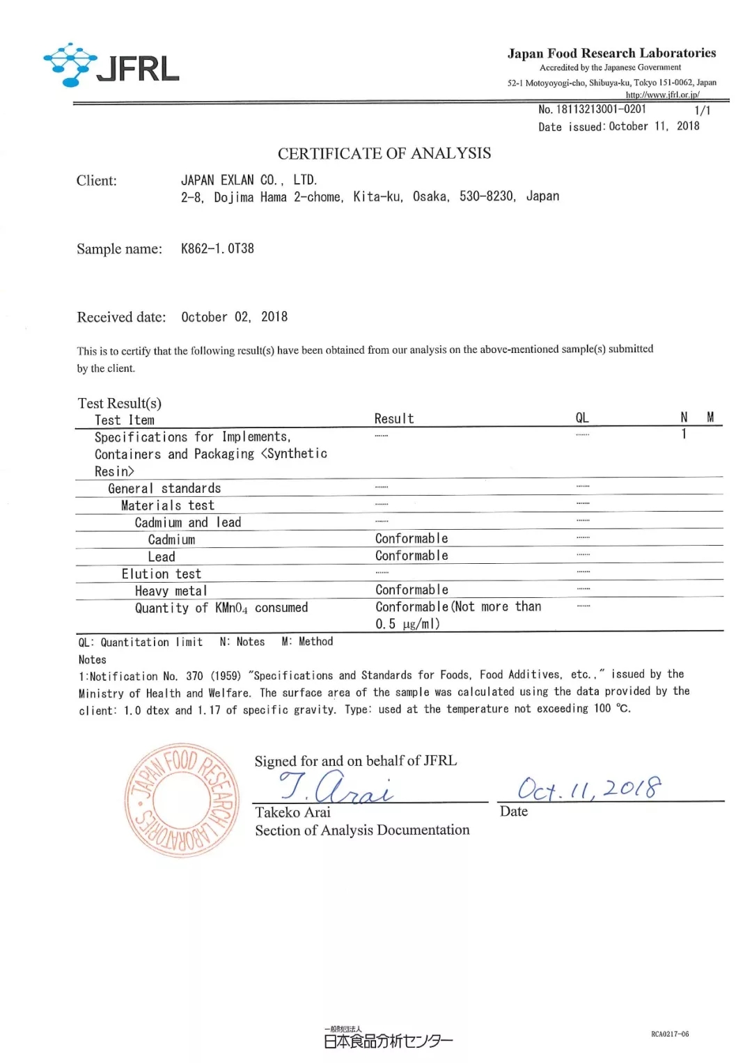 特殊的地理位置,嚴苛的標準,特殊的生產(chǎn)工藝造就了更安全的食品級東洋紡腈綸。公司腈綸產(chǎn)品通過日本食品研究實驗室JFRL的檢驗。